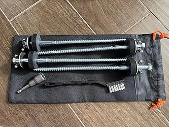 These stakes are awesome. I have similar ones, but without the rubber bumpers and tie down points, but still screw in, and I like those a lot too. These take it a step further with the extras I just mentioned and it includes a storage pouch and magnetic nut driver. Whether I’m securing a tent or a holiday inflatable decoration in the yard, these stakes make life easier. I just get out my impact drill and drive them into the ground. Even if there’s a rock in the dirt, these stakes drilling action usually helps to displace the rock and it keeps going into the dirt. These are more secure and easier to install, in my opinion, and better quality. The price point is ok for these. Long lag screws tend to be a little pricey, but they work well
