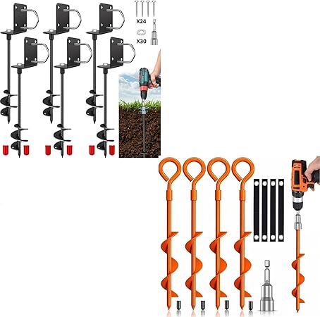 - 10 Pack Swing Set Anchor Kit Screw in Earth Anchors Trampoline Spiral Stakes