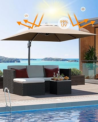 10′ x 10′ Extra Large Square Cantilever Umbrella – UV Protection, Adjustable Tilt, Sturdy Base, Easy Assembly, and Weather-Resistant Fabric.