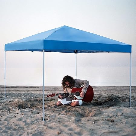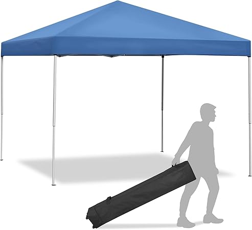 10 x 10 ” Pop Up Height Adjustable Canopy Tent Sun Protection Waterproof Instant Shelter Portable Folding Canopy with Ropes Stakes Roller Carry Bag, Blue
