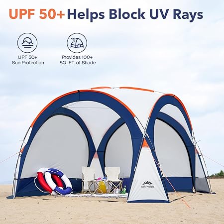10×10 Beach Tent Sun Shelter UPF 50+ Canopy for 6-8 People Outdoors