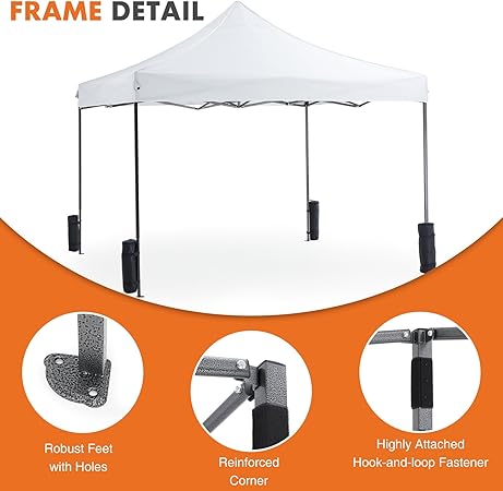 - 【Strong and Sturdy】The cross shaped frame is and highly rated to ensure robust, reliable performance. Comes pre assembled and can be installed without tools. Support legs with holes to secure the tent to the ground for stability, making this canopy suitable for commercial and professional use.