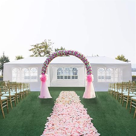 - 🎪【Easy to Assemble】 The party tent is easy to assemble. You’d better to have an assistant to help, no additional tools of the canopy tent are required, just keep the frame steady when assemble the wedding tent steel tube and cover.