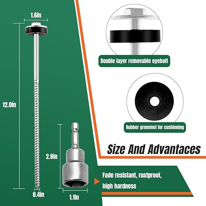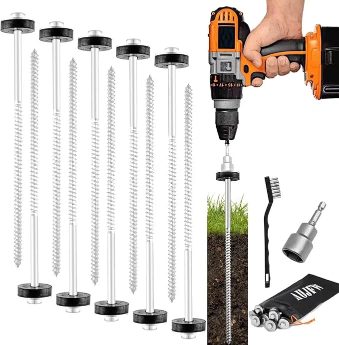 - Unique Design:Hex screw in tent stakes is spiral tip design offers a strong grip, with the help of a cordless drill or impact driver screw, black plastic pad providing tent stability for you. Tent stakes will have your awning, canopy, tents, or tarps secured to the ground in seconds. Spend less time setting up, let you more time with more time enjoying the outdoors your family
