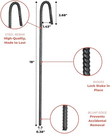 Secure your projects with our 18in Heavy Duty J Hook Rebar Ground Stakes. Durable and reliable—order your 20 pack today!