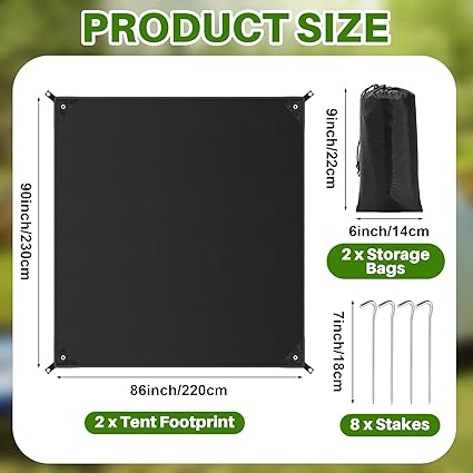 2 Pcs Waterproof Camping Tarp 86” x 90” Ultralight Tent Footprint Heavy Duty Camp Tarp Ground Tarp for Camping with Carry Bag Stakes for Hiking Shelter Sunshade Beach Picnic Blanket Mat