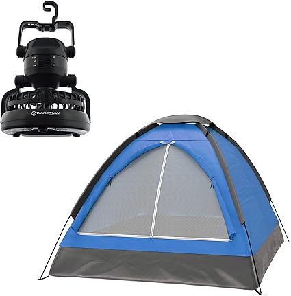 - 2-in-1 CAMPING LANTERN – The included battery-operated hanging light and portable fan combines 18 LED bulbs with high/low cooling settings to help keep your tent illuminated and comfortable. The attached hook allows for easy mounting.