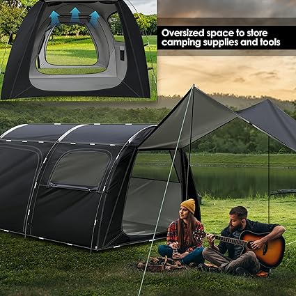 - Larger space:The tent has an extendable awning for more storage and entertaining space with added sun protection. The awning area is perfect for a table and chairs, making it ideal for outdoor dining and relaxation
