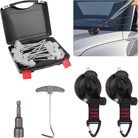 - Include: 20 tent stakes, 1 stake puller, 1 13mm hex drill bit, 1 carrying case for convenient carrying and storage, 2 Suction Cup Hooks