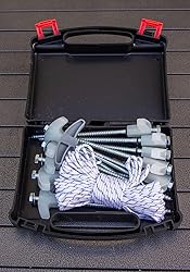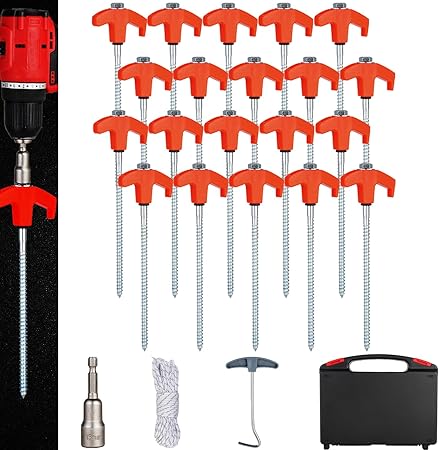 I got this to use for my hunting blind and tents. They are super easy to use and fast to drill into the ground with the bit driver that’s included with the set. I screwed down 12 lines to hold my hunting blind in less than 5 mins. Works very well and great price for the valuable items.
