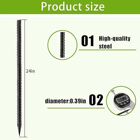 - 【Kind Reminder】: The straight rebar stakes are sharp, so please handle them with care. If you have any questions after receiving the package, contact us promptly, and we will reply within 24 hours.
