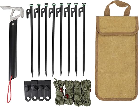 - Small Claw Hammer for Easy Installation: Unlike other kits, this set includes a convenient small claw hammer designed specifically for driving stakes into the ground and pulling them out with ease. Its compact, ergonomic design makes it easy to carry while ensuring efficient stake installation for a hassle- camping experience.