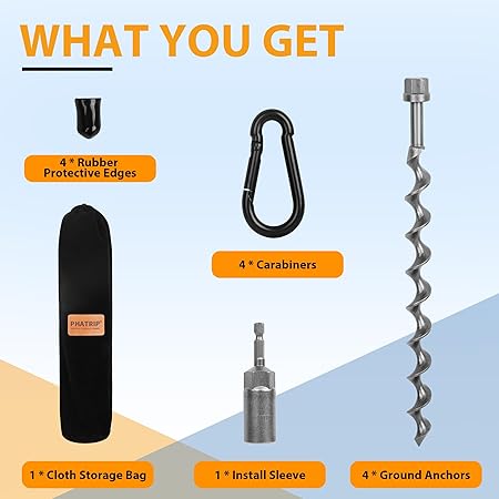 - RUGGED AND DURABLE:Made of powder-coated solid steel, they are strong, durable, rust- and corrosion-resistant, and less likely to break or warp after prolonged use. Compared to traditional manual anchors, these ground anchors feature an improved full spiral design for easier and stronger installation.