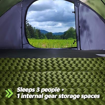 - Spacious Interior: 9.5 x 6.6 feet floor; Sleeps up to 4 people in sleeping bag or 2-3 people with lots of camping gears; Center Height: 52″.
