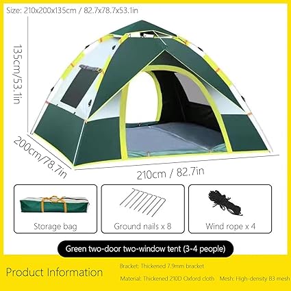 - Large Space: The Camping Tent Size is 210x200x135cm / 82.7×78.7×53.1in, With a spacious interior, this tent comfortably accommodates 2-4 person, making it perfect for small groups or families.