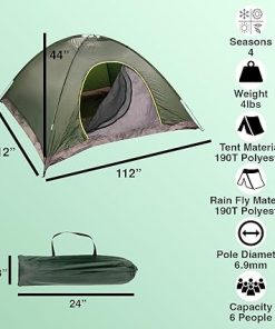 - SIZE MEASUREMENTS: Perfect for kids & adults alike, these large dome tents for camping in big groups measure 112″ x 112″ x 44″ (284 x 284 x 112 cm) and is an ideal 5-6 person tent for all to stretch out & sleep comfortably