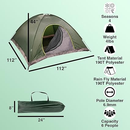 - DOME TENTS FOR CAMPING 6 PERSON: Easy assembly tent can be set up in just 10 minutes & comes with everything you need. Easy set up camp tent comes with 2 full-length poles, 8 support stakes, a rain dome flap, 4 pieces of 80” cord, & compact storage travel bag