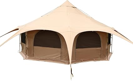 - Spacious Interiors: The canvas tent has a top height of approximately 110” and side poles that are 55” high. You can stand comfortably in the center of the tent with freedom of movement. It is also possible to place tent stoves, chairs, tables and beds. The space can accommodate 6-8 people and is suitable for vacation camping, festivals and events