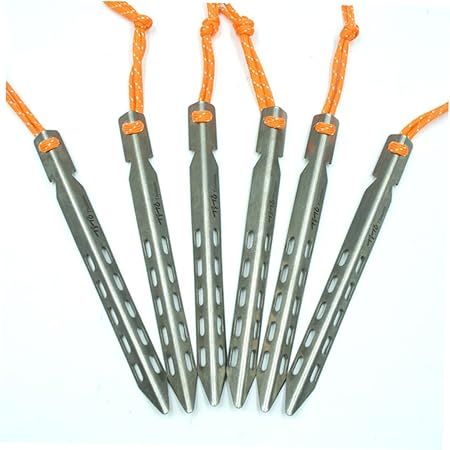 - Tent nail:made by light weight and durability titanium alloy, corrosion resistance, very efficient,v shaped tent nail