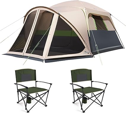 6 Person Camping Tent with Screen Porch and 2 Folding Chairs
