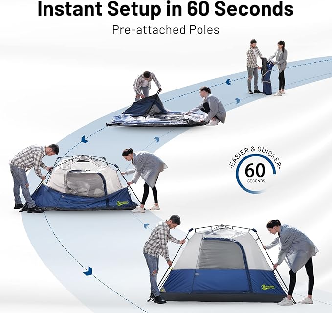 - 60 Seconds Setup-This instant tent only takes 60 seconds to put up, you can even do it without checking the instruction