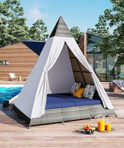 - Weather-Resistant Material: Made from durable gray rattan, this sunbed withstands outdoor elements while maintaining its stylish and modern appearance.