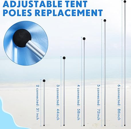 - Easy Assembly and Height Adjustment: these replacement tent poles are easy to assemble, allowing for customization of tent height by using four, five, or all six sections, providing adaptability for beach tent,various camping or outdoor activities