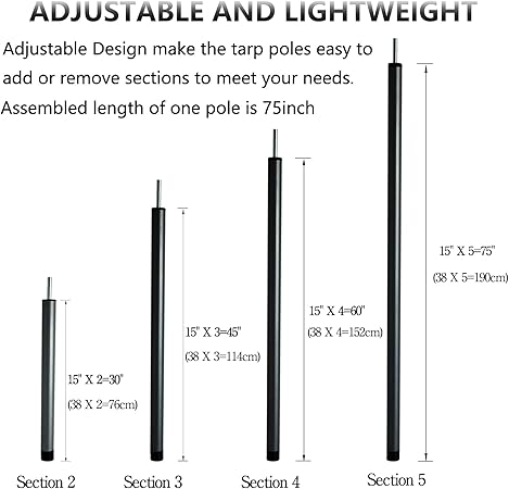 Discover our adjustable steel tarp poles set with pegs and reflective ropes! Perfect for camping and canopies. Get yours now for an upgraded outdoor experience!