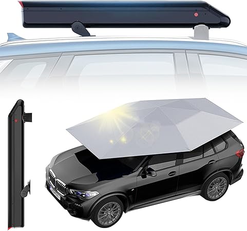 - 【Portable Car Cover Tent】Automatic umbrella for car, suv. Aircraft-grade brackets lock securely to roof rails. After being stowed, it is compact and lightweight, with a length of 85cm and a weight of 5.3kg. It can be easily placed in the trunk. Do not use the awning while driving.