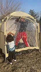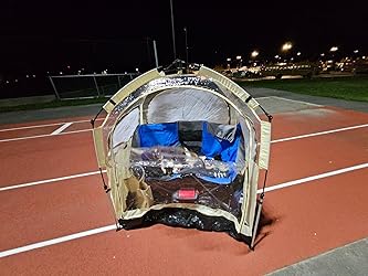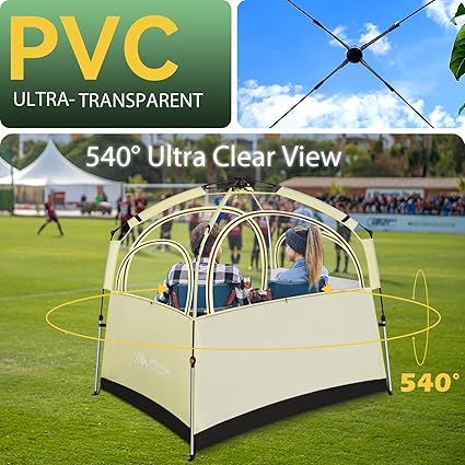 - 【540° ULTRA-CLEAR VISION】The clear sports pod tent has 5 transparent surfaces made of HD PVC material, providing a clear view of 540 degrees for the best viewing experience. Removable top cover protects against sun and rain.