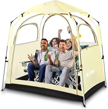 - 【SPACIOUS & COMFORTABLE SPACE】The rain sports tent measures are 71 “L x 51 “W x 65 “H and can accommodate 1-4 people, providing a spacious and comfortable space. With excellent insulation, windproof and waterproof performance suitable for all kinds of weather, ideal for watching sports events, camping, hiking, fishing, photography.