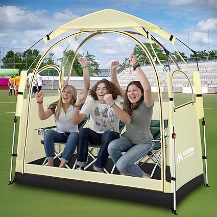- 【AIR CIRCULATION, KEEPING AWAY MOSQUITOES】In addition to a large door, our sports tents have removable windows on three sides to maximize air circulation while keeping mosquitoes out. The bottom of the sport tent is made of stain-resistant black PE material, which is easy to clean.
