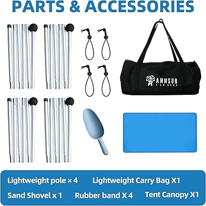 - 【Quick & Easy Setup】– AMMSUN beach tent can be set up by a single person in less than five minutes. First fill the sandbags, assemble and upright the poles, Tie the bungee cord to the EVA foam ball , you will get a spacious sunshade beach tent. As the sun moves throughout the day, simply move your sandbag anchors to a different spot, or adjust the position of the poles, to get the best shelter from the sun and keep enjoying the outdoors
