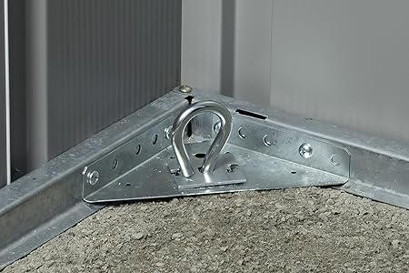 When this arrived, I thought I had made a big mistake. I didn’t think this would work at all, but I attached them to the floor frame of my new shed, and they work GREAT! Easy to install…just remember to moisten the soil before installation. I used a long screwdriver to put through the loop and it provided great leverage to turn the screw post.