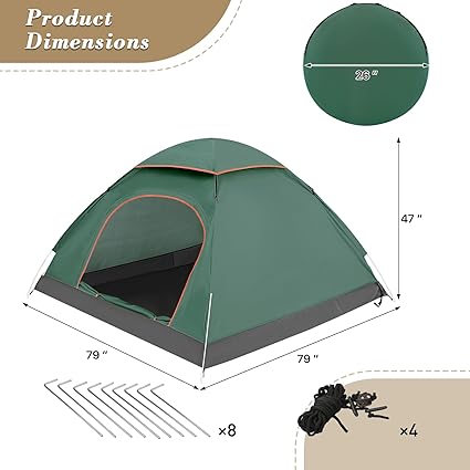 - Portable and Lightweight: The support poles of the 2 person outdoor tent are made of high-quality fiberglass material, and the entire tent can be folded into a smaller size and put into a bag, making it easy to carry to camping sites or event sites.