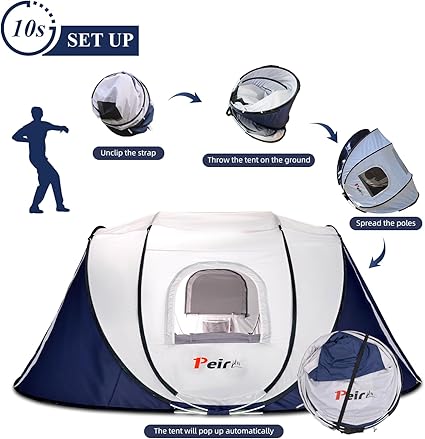 - 3s Pop Up Tent: Throw the tent to the opening ground, CAREFUL to keep distance from others when unfolding. Easy setup, instant pop-up tent with pre-assembled poles sets up in seconds, and easy storage in 10 seconds. Getting more time to enjoy your camping.