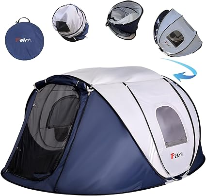 - High Quality Material: Peirhw pou up tent is made of 190T Polyester Taffeta PU 2000mm, waterproof tape on every seam to ensure the tent inside keep dry under raining, The metal ground spike and windproof pulling rope keep your waterproof tent firmly in place. NOT SUITABLE FOP HEAVY RAIN.