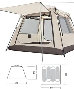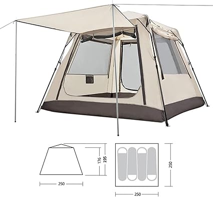 - Spacio 3-4 Person Capacity: The tent expands to 250×250×200 cm, providing plenty of room for 3-4 people, making it perfect for family camping, group trips, and gatherings.Waterproof & UV Protection Crafted with 190T polyester fabric and a PU2000mm waterproof coating, this tent offers protection from rain and harmful UV rays, you stay dry and outdoors.Easy 2-Second Setup: The fully automatic steel pipe support allows for a fast and stress- setup. Simply pop it open, and