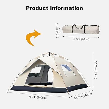 - 【 Spacious Space, Comfortable Accommodation for 3-4 People 】 – Size: 78 * 86 * 57 inches (length x width x height), enough to accommodate 3-4 people and carry on luggage
