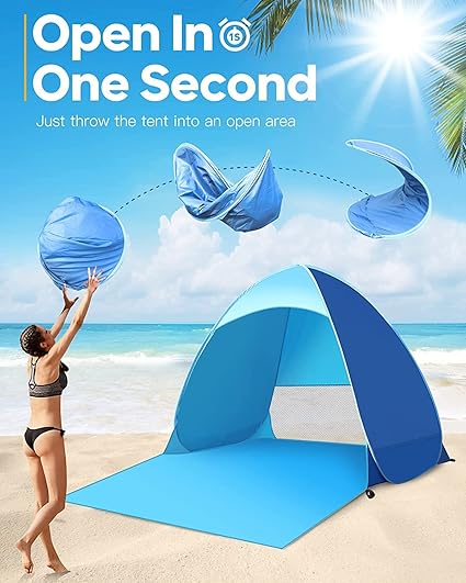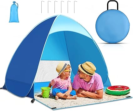 - 【Widely Use 】This beach tent is appropriate to be used as a canopy, beach cabana, beach umbrella or sun tent providing cool, all-day beach shade at park, lake, camping, beach, hiking, fishing or weekend trip and music festivals. It also can be an indoor play tent for Kids.