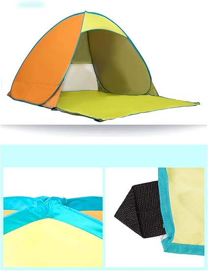 - Super easy to get up and down: This beach tent awning automatically pops up in less than a second, set in less than 30 seconds, easy to fold, twisted or figure 8, put into a spacious portable carrying bag, no need to struggle with this collapsible beach sun shelter.