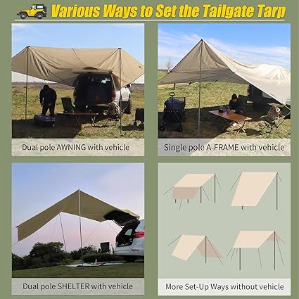 - Wide Vehicle Compatibility: The car tailgate tarp is designed to fit a variety of vehicles, including SUVs, Jeeps, MPVs, Vans, CUVs, and more. Perfect for tailgating, camping, or any outdoor activity.