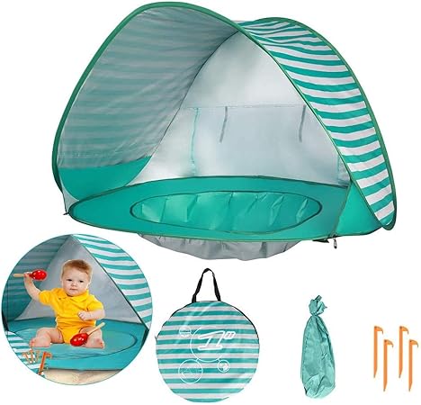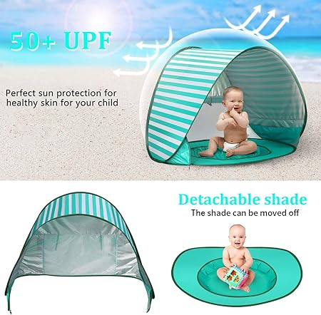 - 【Mini Pool】– This baby tent comes with a built-in mini pool, It allows baby to play in the water without any danger, parents and baby can enjoy a beach trip together.