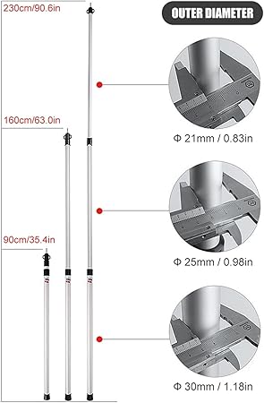 BCcamping Player’s First Choice Tent Pole Adjustable Tent Support Rods Beach Shelter Tarp Awning Pole Replacement Poles Accessories Camping Hiking Tent Camping Bracket(2pc 250cm Silver)