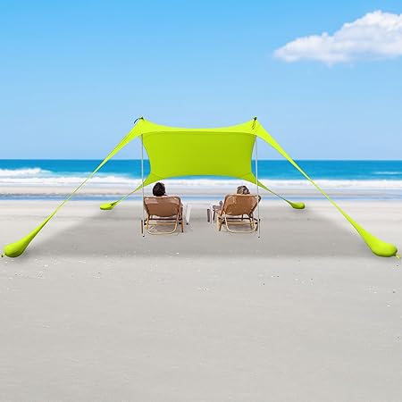 - Spacious Space: The beach tent top measures 6.56*5.25ft, the inclined design can effectively block sunlight, and the open interior is spacious and can accommodate 2-3 people, ensuring you have enough shade on the beach with your friends while enjoying the sea breeze.