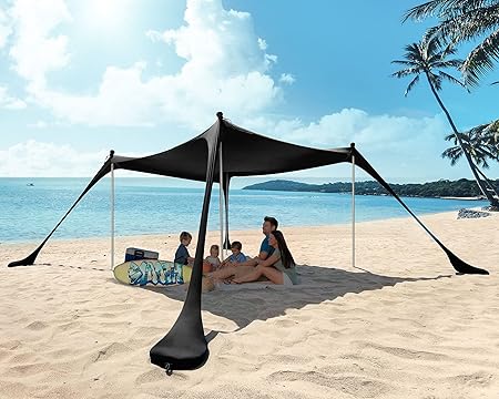 - 【MAKE YOUR OUTDOOR SHELTER IN AN INSTANT】This camping sun shelter is straightforward to assemble, you can prepare the beach tents sun shelter pop up in a matter of seconds – just fill the large sand anchor fully, and use the foldable pole to support the tent. And when the trip is over, you can take it down for only a few minutes. In addition, the poles are adjustable, so you can adjust the canopy as much as you like to block out any sun rays that try to get in touch with your skin.