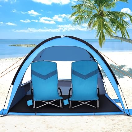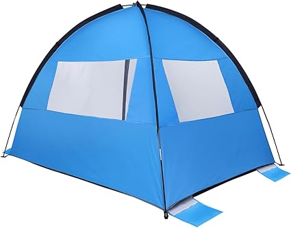 - Storage bags on the sides of tent keep small objects organized. sand bags in 4 corners, extra 4 tent pegs and 2 ropes protect the tent against strong wind.