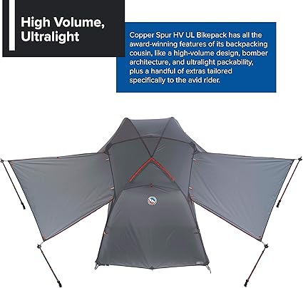 - THE BIKE-PACKERS DREAM – Single-track, two-track, and roadie riders rejoice; our two-door, two vestibule Copper Spur HV UL Bikepack tent is equipped with loads of bike-friendly features that add utility and luxury to your two-wheeled adventures. Now simplified setup with proprietary tent corner construction and unique TipLok Tent Buckle that combines three functions: secure pole-tip capture, rainfly attachment and tensioner, and stake-out loop.