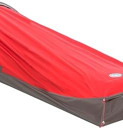 - Top third of bivy zips open creating extra-large entry. Shallow bathtub floor for protection and structural support.