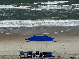 I ordered this to be used mainly on the beach specifically during volleyball tournaments. This shade is super easy to set up and it provides an extremely large area of shade (more than i needed)! If they sold just the shade separately but 10×10, I would seriously consider ordering that too. All in all, if you’re looking for a shade that’s easy to set up, covers a large area, and not concerned with how heavy (a backpack is provided to pack everything) it is to transport, then this shade is for you!